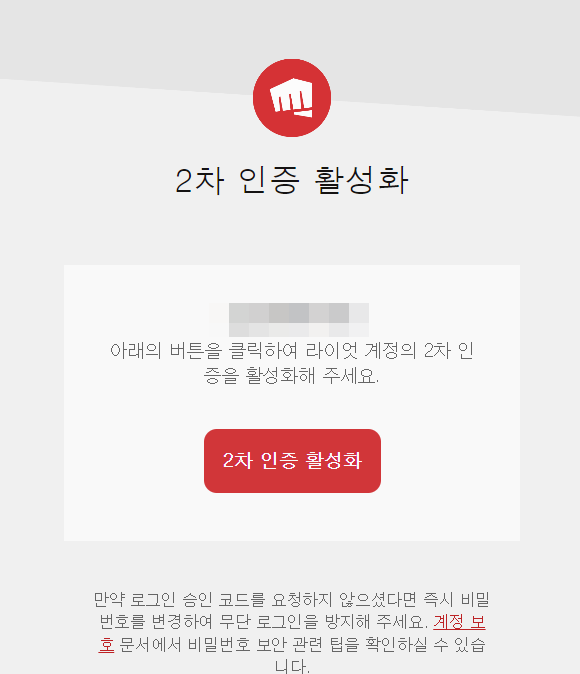등록하신 이메일에 들어가 2차 인증 활성화 버튼을 눌러 활성화 시켜 줍니다.