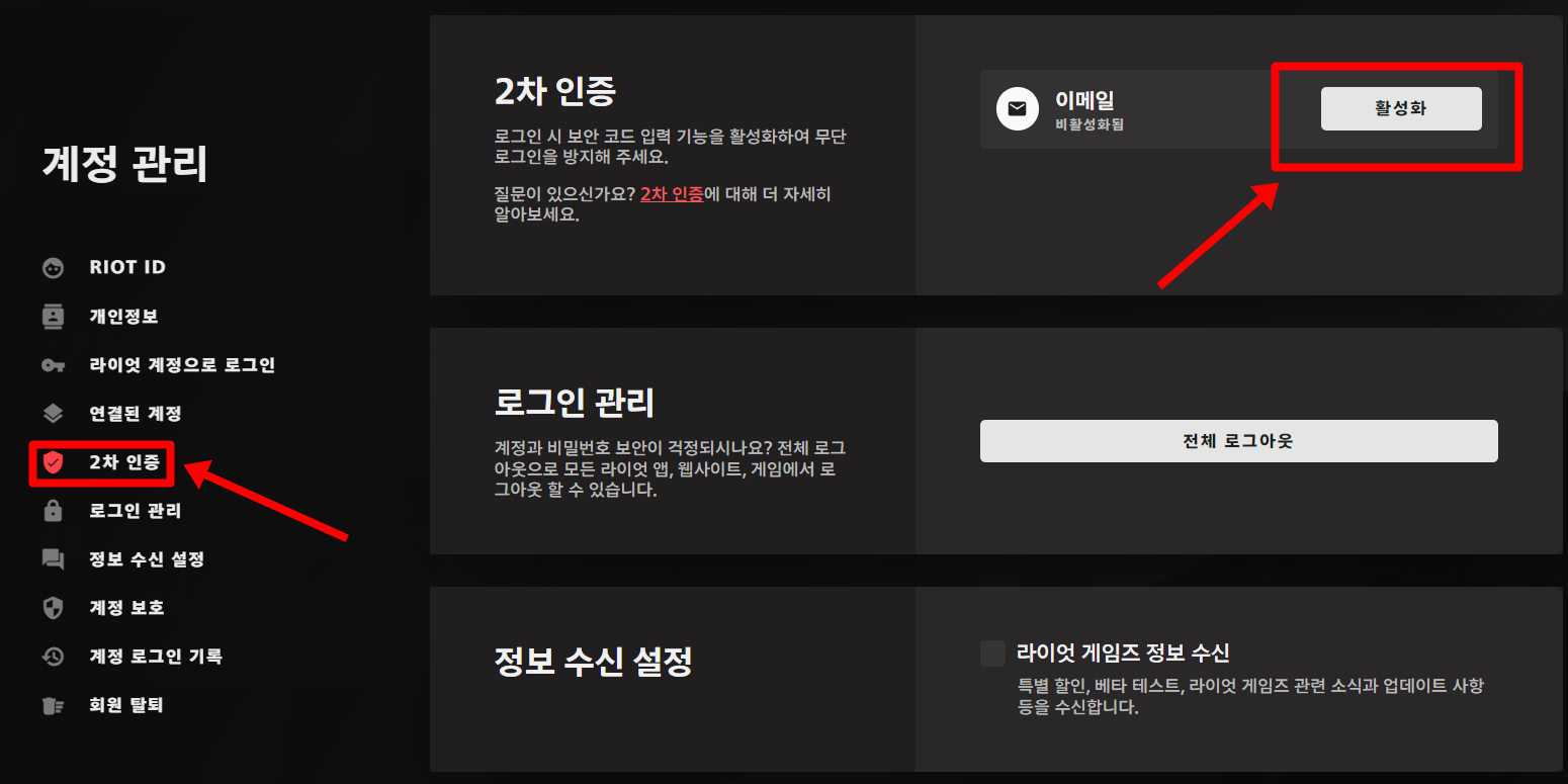 2차 인증이 설정되면 로그인 시 등록된 이메일에 보안코드를 입력해 로그인이 가능합니다. 귀찮더라도 2차 인증을 설정해 아이디를 지키도록 합니다.