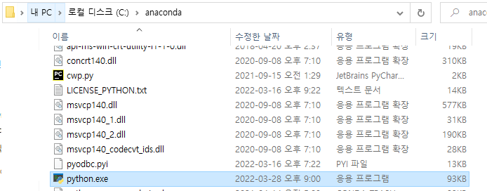 폴더를 열고 설치 경로에 python파일이 있는지 확인하면 있습니다.