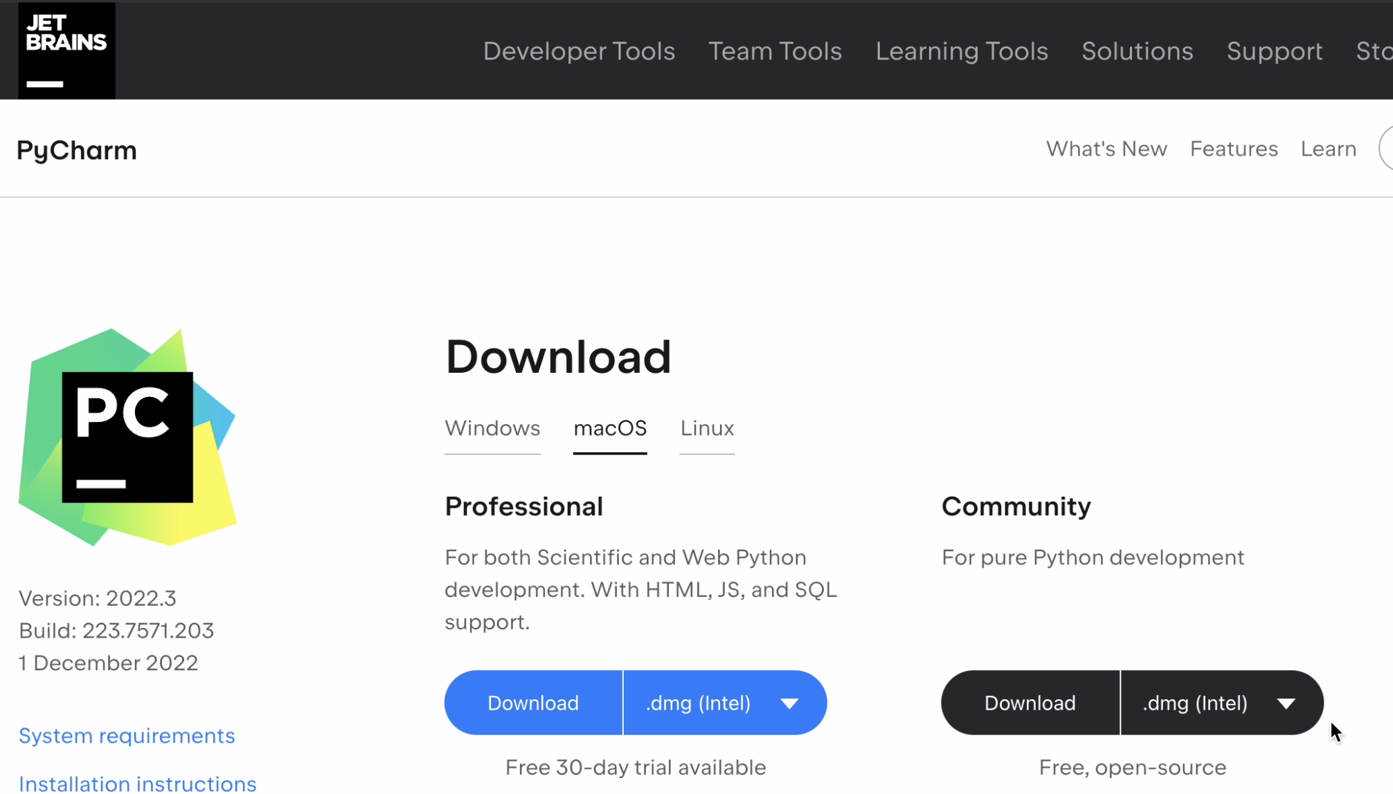 Download the latest version of PyCharm for Windows, macOS or Linux.