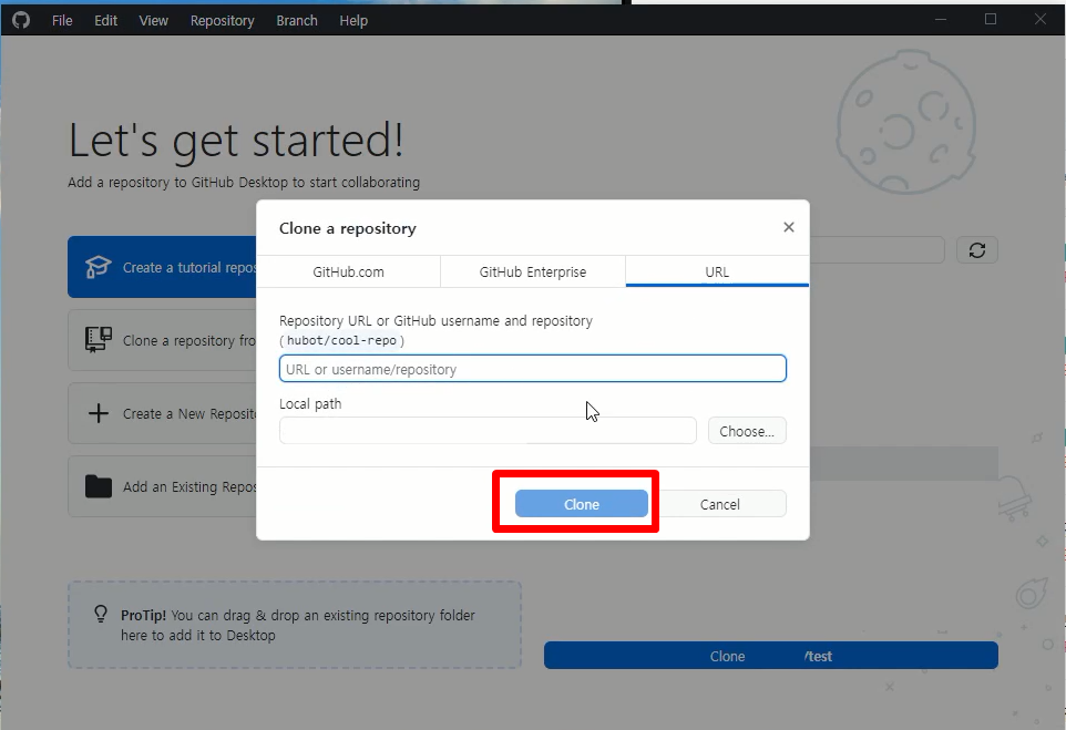 2. 클론 레파지토리와 폴더 선택