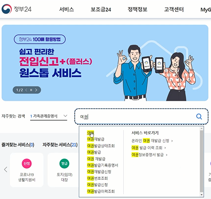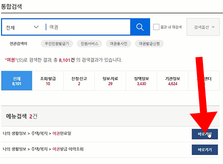 로그인을 완료했으면 검색창에 여권을 검색해 줍니다.