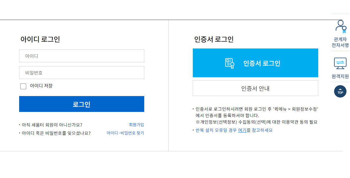 로그인을 해줍니다. 한번만 발급 받을 경우에는 비회원 로그인되 가능합니다.