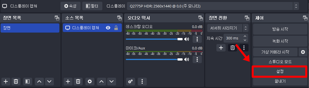 obs 설정에 들어가 줍니다.