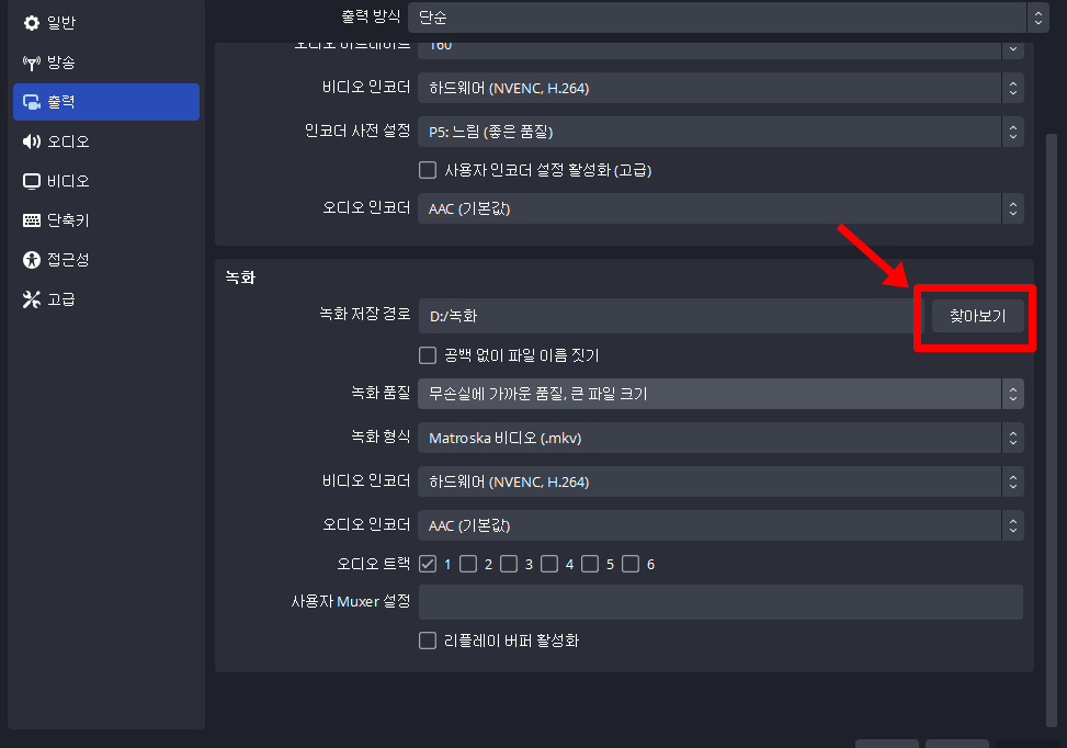 출력 탭에 녹화 저장 경로 메뉴에 가줍니다. 찾아보기를 클릭하면 녹화 저장 경로를 설정할 수 있습니다. 이상 obs 녹화 경로 설정 방법에 대해 알아보았습니다. 감사합니다.