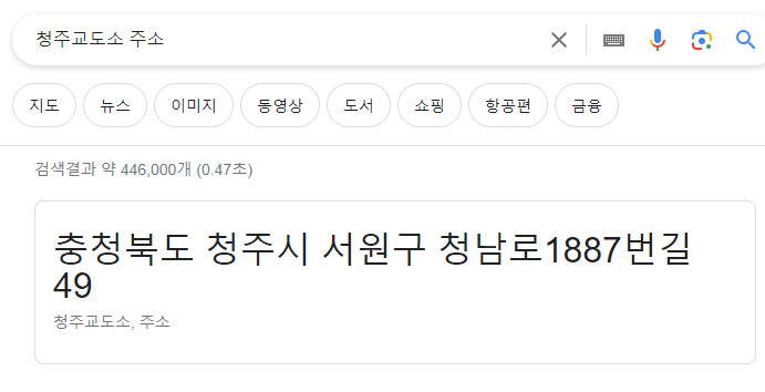 신분증을 가지고 가까운 교도소에 방문해 줍니다. 지도에 검색하면 교정시설은 검색이 안될 것입니다. 그럼 인터넷에 000 교도소 주소 검색하시면 주소가 나옵니다. 저는 청주 교도소에 방문했습니다.