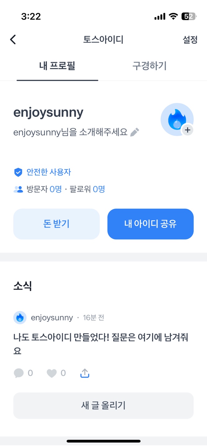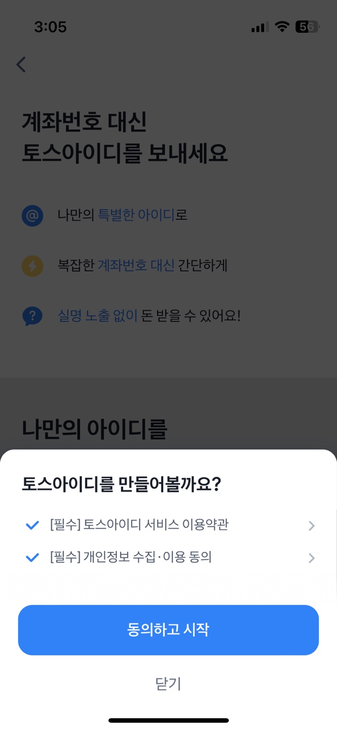 1번처럼 검색 - 내 토스아이디 메뉴로 들어오시면 토스 아이디창으로 들어올 수 있습니다. 이제 아이디를 공유해서 돈 받기, 익명 송금 기능을 사용할 수 있습니다. 밑에 링크로 한번 시험삼아 해보시길 바랍니다. 감사합니다.