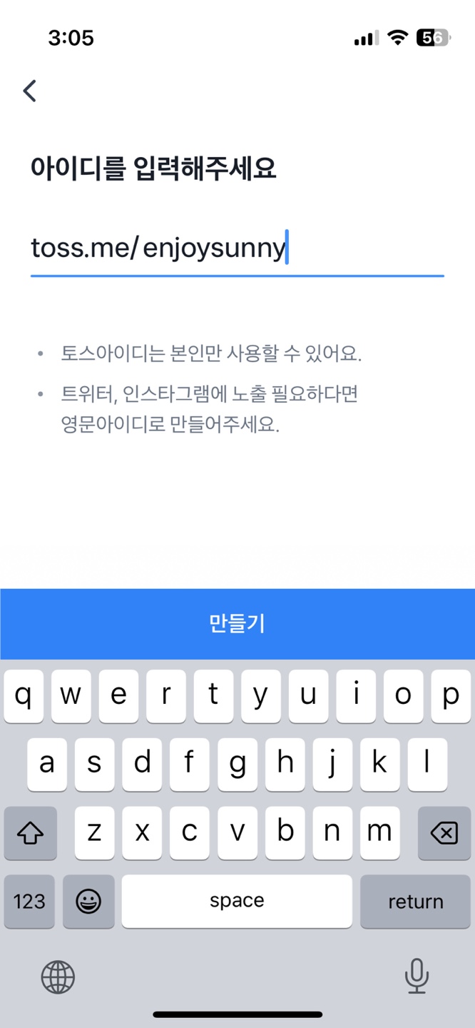 본인의 아이디를 생성해줍니다. 영어로 생성하면 인스타그램이나 트위터에도 노출이 가능합니다.