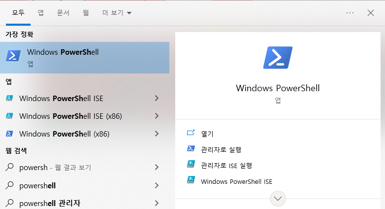 1. powershell 관리자로 실행
