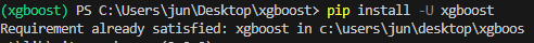 프로그래밍/오류 ImportError: cannot import name 'XGBClassifier' from 'xgboost' (unknown location) 해결방법 by 조이써니 2023. 10. 2. 반응형 1. xgboost 설치 pip install xgboost 2. xgboost 업그레이드 pip install -U xgboost 3. 컴퓨터 재부팅 컴퓨터 재부팅하니까 해결되었습니다. 감사합니다. 반응형 공유하기 게시글 관리 enjoy_sunny 저작자표시 비영리 변경금지 (새창열림) '프로그래밍 > 오류' 카테고리의 다른 글 pyenv 오류 해결 방법 pyenv : 이 시스템에서 스크립트를 실행할 수 없으므로 C:\Users\j\.pyenv\pyenv-win\bin\pyenv.ps1 파일을 로드할 수 없습니다. 자세한 내용은 about_Execution_Policies(https://go.microsoft.com/fwlink/?LinkID=135170)를 참조하십시오.위치 줄:1 문자:1+ pyenv+ ~~~~~ + CategoryInfo : 보안 오류 (0) 2024.07.05 graphviz 에러 해결방법 ExecutableNotFound: failed to execute WindowsPath('dot'), make sure the Graphviz executables are on your systems' PATH Output is truncated. View as a scrollable element or open in a text editor. Adjust cell output settings... (0) 2023.10.06 구글 서치콘솔 오류 해결방법 : 페이지 색인을 생성할 수 없음: Google에는 아직 알려지지 않은 URL입니다. (0) 2023.10.01 xgboost 오류 해결 방법 FutureWarning: is_sparse is deprecated and will be removed in a future version. Check `isinstance(dtype, pd.SparseDtype)` instead. if is_sparse(data): (0) 2023.09.29 파이썬 가상환경 .\Scripts\Activate에러 해결방법, 이 시스템에서 스크립트를 실행할 수 없으므로 C:\Users\jun\Downloads\새 폴더\new venv\Scripts\Activate.ps1 파일을 로드할 수 없습니다. (0) 2023.09.27 관련글 pyenv 오류 해결 방법 pyenv : 이 시스템에서 스크립트를 실행할 수 없으므로 C:\Users\j\.pyenv\pyenv-win\bin\pyenv.ps1 파일을 로드할 수 없습니다. 자세한 내용은 about_Execution_Policies(https://go.microsoft.com/fwlink/?LinkID=135170)를 참조하십시오.위치 줄:1 문자:1+ pyenv+ ~~~~~ + CategoryInfo : 보안 오류 graphviz 에러 해결방법 ExecutableNotFound: failed to execute WindowsPath('dot'), make sure the Graphviz executables are on your systems' PATH Output is truncated. View as a scrollable element or open in a text editor. Adjust cell output settings... 구글 서치콘솔 오류 해결방법 : 페이지 색인을 생성할 수 없음: Google에는 아직 알려지지 않은 URL입니다. xgboost 오류 해결 방법 FutureWarning: is_sparse is deprecated and will be removed in a future version. Check `isinstance(dtype, pd.SparseDtype)` instead. if is_sparse(data): 댓글