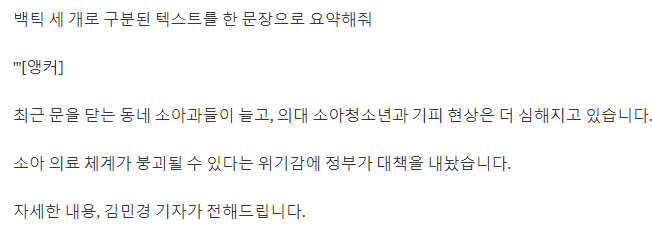백틱 세 개로 구분된 텍스트를 한 문장으로 요약해줘