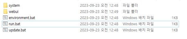 run.bat를 실행시켜 주면 설치가 됩니다. 설치시간은 많이 걸립니다.