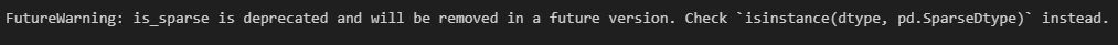 FutureWarning: is_sparse is deprecated and will be removed in a future version. Check `isinstance(dtype, pd.SparseDtype)` instead. if is_sparse(data):