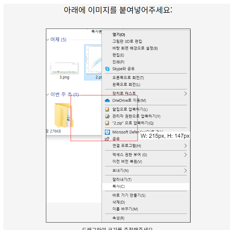 또는 이미지 파일인 경우 이미지를 직접 복사해 주어서 붙여 넣어주면 됩니다.