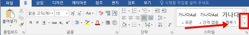 홈 - 스타일에 가서 화살표를 눌러 다양한 스타일을 펼칩니다.