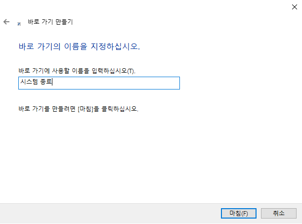 바로가기 이름을 설정해 줍니다.