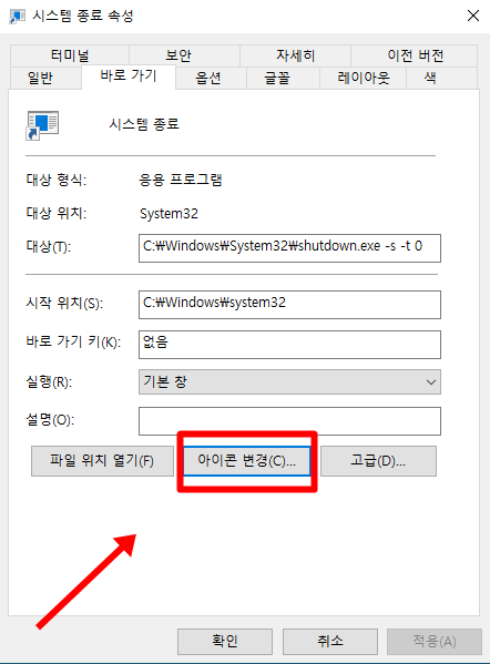 2. 시스템 종료 아이콘 변경
