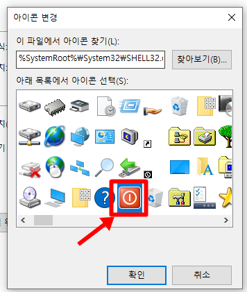 아이콘 변경을 클릭해 줍니다.