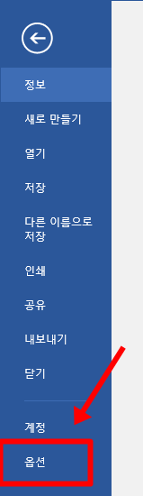 왼쪽 아래에 옵션을 클릭해 줍니다.