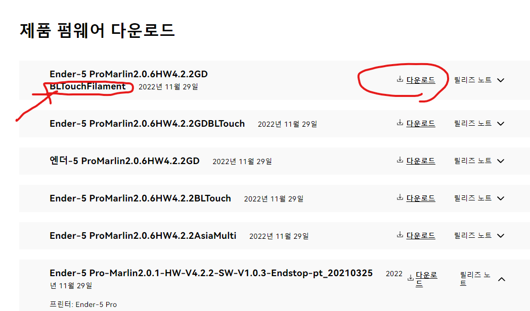 bltouch가 들어간 거 다운로드해서 sd카드에 넣고 프린터 실행하면 업데이트 완료