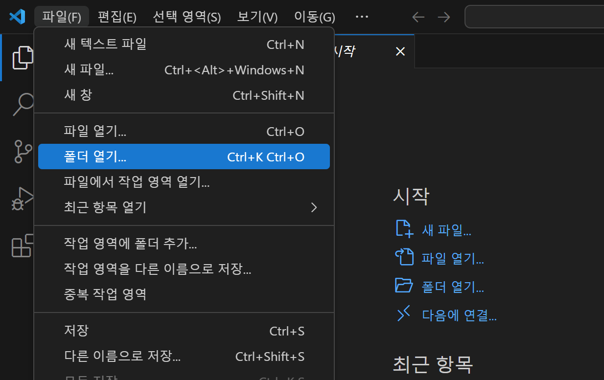 파이썬 파일을 실행할 폴더를 선택해 줍니다. 앞으로 이 공간이 작업공간이 됩니다.