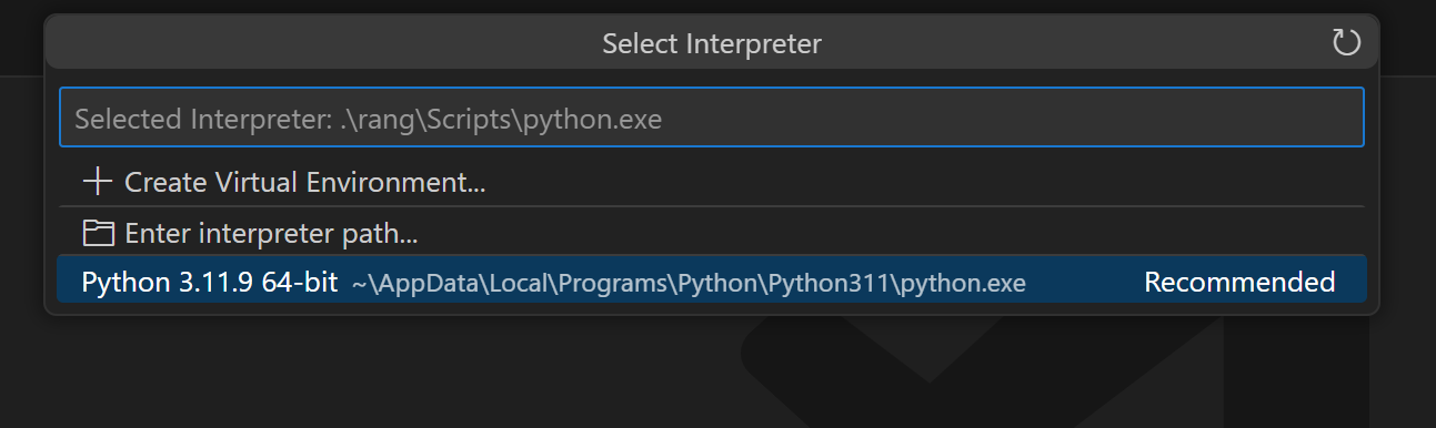 인터프리터는 어느 환경으로 실행할지 정하는 것입니다.