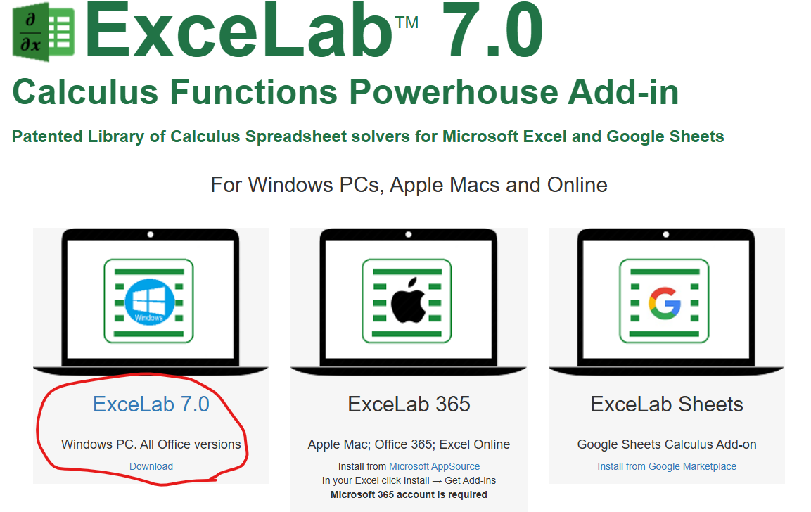ExceLab Calculus Add-in for Excel: Patented spreadsheet calculus functions