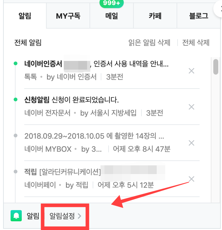 1. 네이버 로그인 내 정보 창에 알림설정을 눌러줍니다.