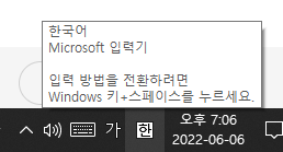 <Windows 키 + 스페이스바>를 누르면 해결됩니다.